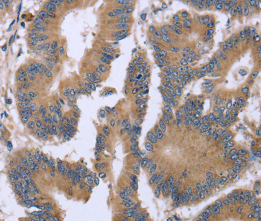 Immunohistochemistry of paraffin-embedded Human colon cancer tissue using KIAA1324 Polyclonal Antibody at dilution 1:30