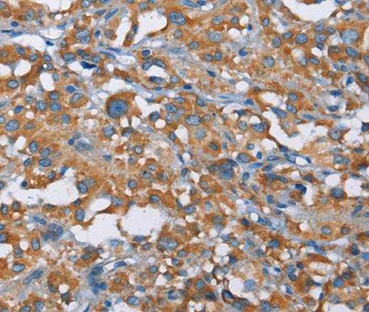 Immunohistochemistry of paraffin-embedded Human thyroid cancer tissue using KLF7 Polyclonal Antibody at dilution 1:40