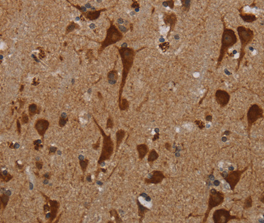 Immunohistochemistry of paraffin-embedded Human brain tissue using KMT2D Polyclonal Antibody at dilution 1:40
