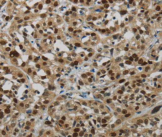 Immunohistochemistry of paraffin-embedded Human esophagus cancer tissue using DNA Ligase1 Polyclonal Antibody at dilution 1:70