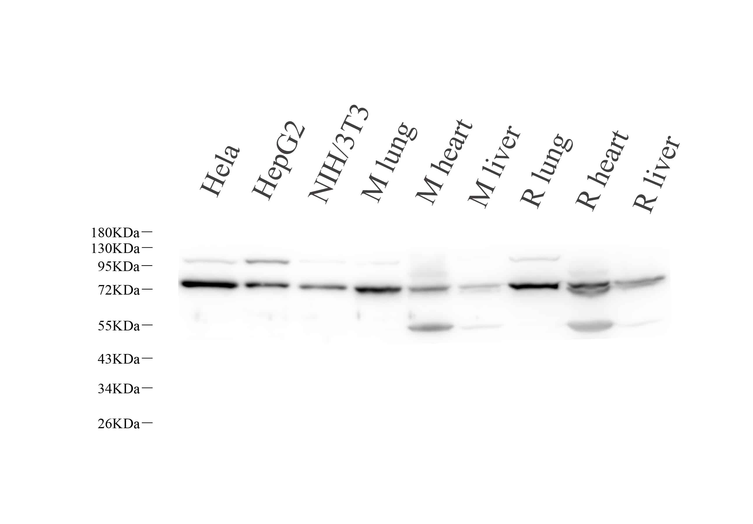 Western Blot analysis of various samples using LMNA Polyclonal Antibody at dilution of 1:1000.