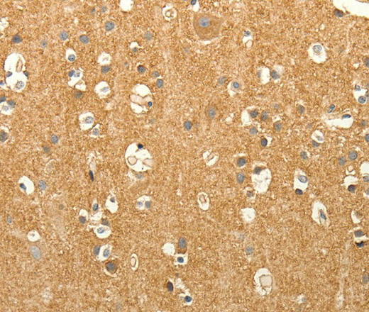 Immunohistochemistry of paraffin-embedded Human brain tissue using EDG7 Polyclonal Antibody at dilution 1:40