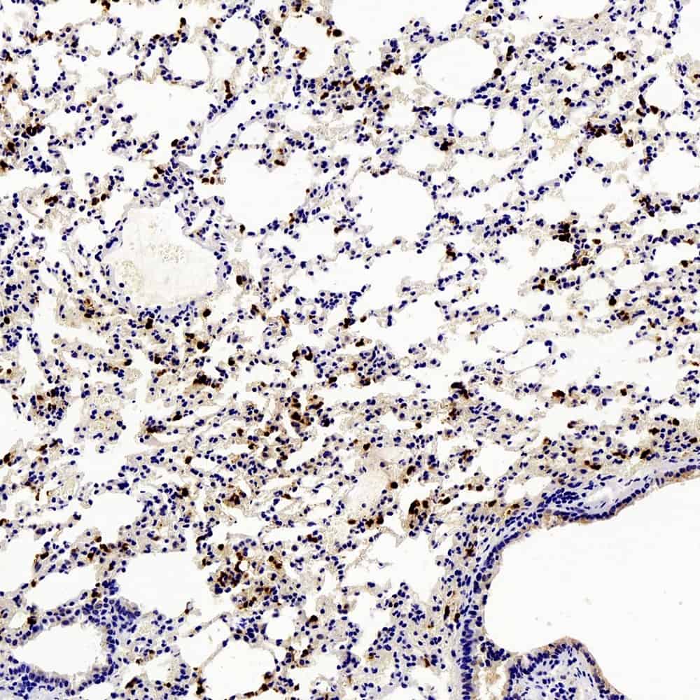 Immunohistochemistry analysis of paraffin-embedded mouse Inflammatory lung using Ly6g Polyclonal Antibody at dilution of 1:200.