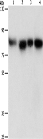 Western Blot analysis of Hela, 231, hepG2 and Raji cell using MAD1L1 Polyclonal Antibody at dilution of 1:500