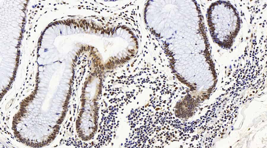 Immunohistochemistry analysis of paraffin-embedded human colon using MAP2K1 Polyclonal Antibody at dilution of 1:100.