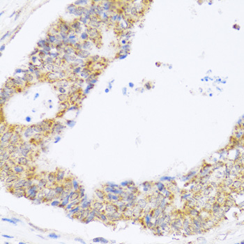 Immunohistochemistry of paraffin-embedded Human colon carcinoma using ZAK Polyclonal Antibody at dilution of 1:100 (40x lens).