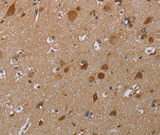 Immunohistochemistry of paraffin-embedded Human brain tissue using MARK1 Polyclonal Antibody at dilution 1:30
