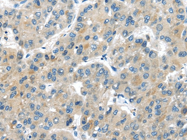 Immunohistochemistry of paraffin-embedded Human liver cancer tissue using MASP2 Polyclonal Antibody at dilution 1:35