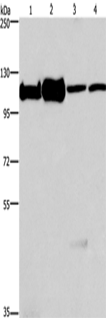 Western Blot analysis of 293T, K562, NIH/3T3 and hela cell using MCM6 Polyclonal Antibody at dilution of 1:500