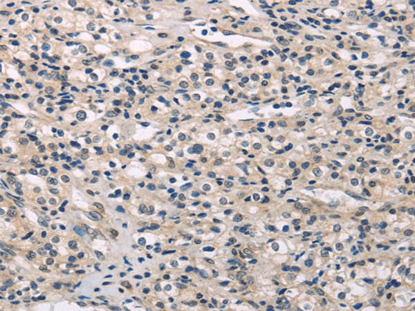 Immunohistochemistry of paraffin-embedded Human prostate cancer using MED28 Polyclonal Antibody at dilution of 1/30