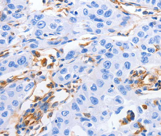 Immunohistochemistry of paraffin-embedded Human lung cancer tissue using MFN1 Polyclonal Antibody at dilution 1:60