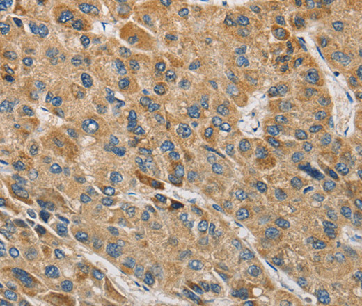 Immunohistochemistry of paraffin-embedded Human liver cancer tissue using MIP Polyclonal Antibody at dilution 1:60
