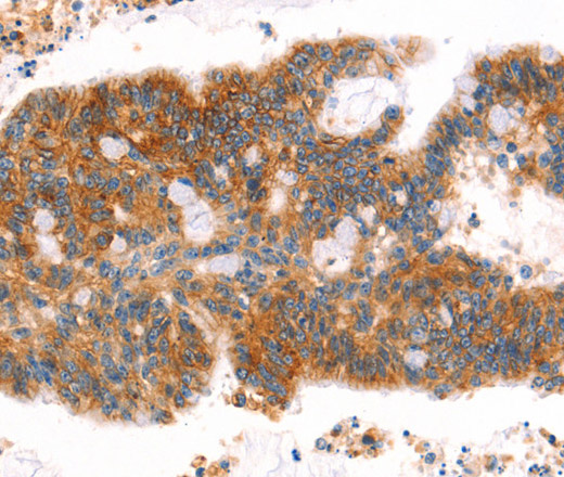 Immunohistochemistry of paraffin-embedded Human colon cancer tissue using AFDN Polyclonal Antibody at dilution 1:40