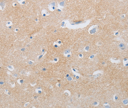 Immunohistochemistry of paraffin-embedded Human brain tissue using CD10 Polyclonal Antibody at dilution 1:85