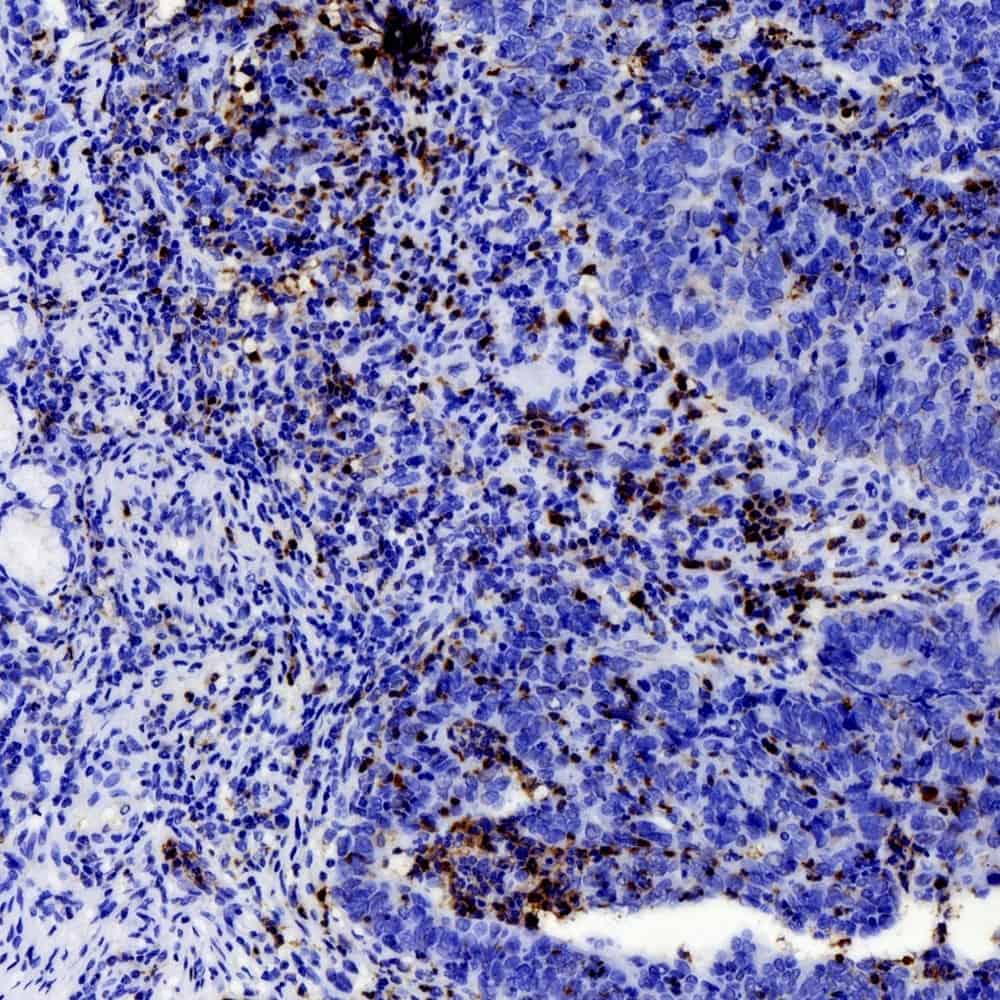 Immunohistochemistry analysis of paraffin-embedded human stomach cancer using MMP9 Polyclonal Antibody at dilution of 1:200.