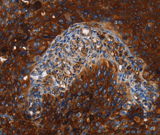 Immunohistochemistry of paraffin-embedded Human cervical cancer tissue using MSLN Polyclonal Antibody at dilution 1:40
