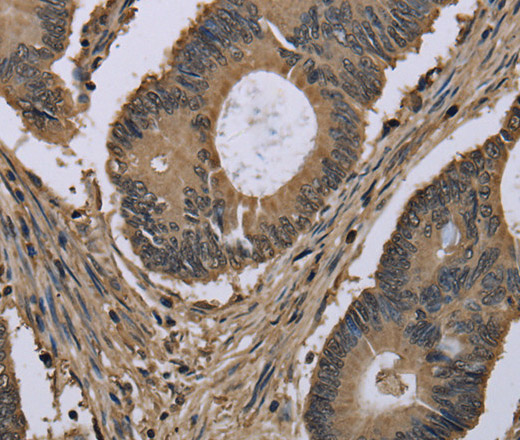 Immunohistochemistry of paraffin-embedded Human colon cancer tissue using MYO18B Polyclonal Antibody at dilution 1:50