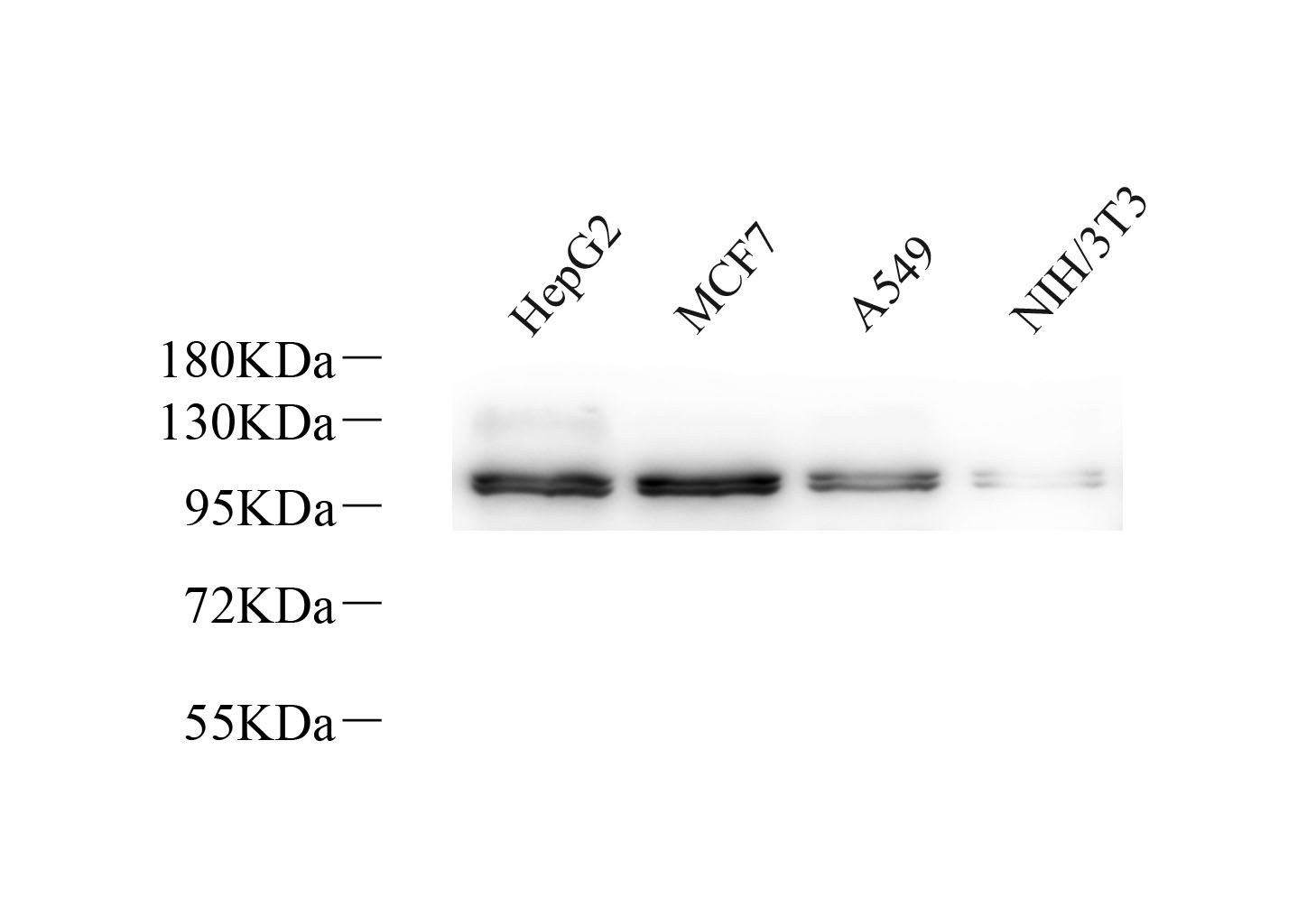 Western Blot analysis of various samples using Na+/K+-ATPase alpha1 Polyclonal Antibodyat dilution of 1:800.