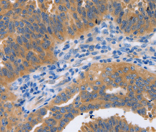 Immunohistochemistry of paraffin-embedded Human ovarian cancer tissue using NBEA Polyclonal Antibody at dilution 1:60