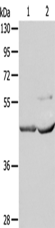 Western Blot analysis of Mouse kidney and heart tissue using NCEH1 Polyclonal Antibody at dilution of 1:1350