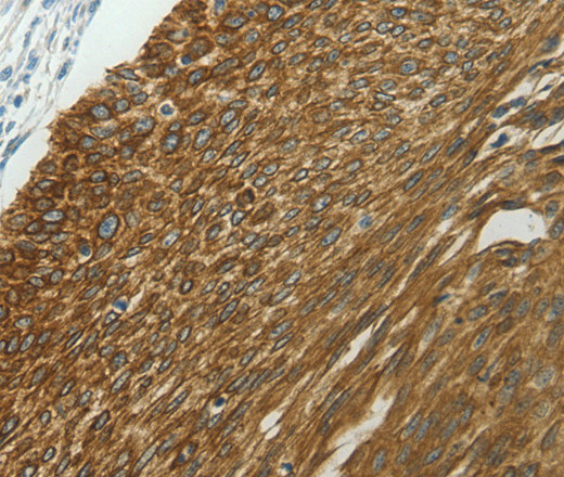 Immunohistochemistry of paraffin-embedded Human cervical cancer tissue using NDRG2 Polyclonal Antibody at dilution 1:40