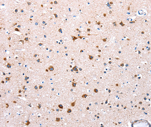 Immunohistochemistry of paraffin-embedded Human brain tissue using NDUFA12 Polyclonal Antibody at dilution 1:50