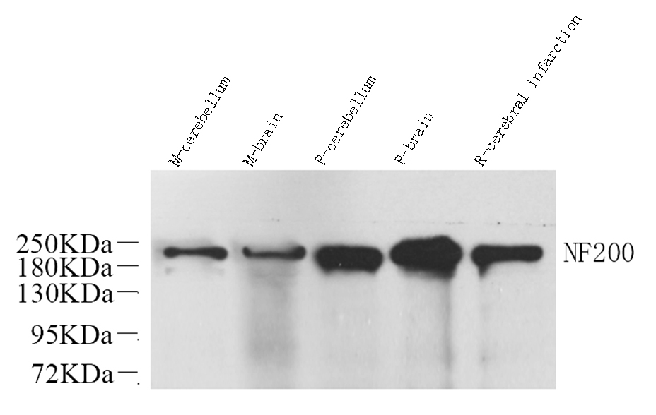 Western Blot analysis of various samples using NEFH Polyclonal Antibody at dilution of 1:1000.