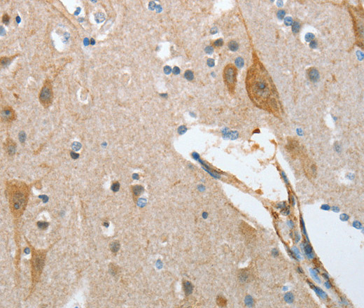 Immunohistochemistry of paraffin-embedded Human brain tissue using NOL3 Polyclonal Antibody at dilution 1:35