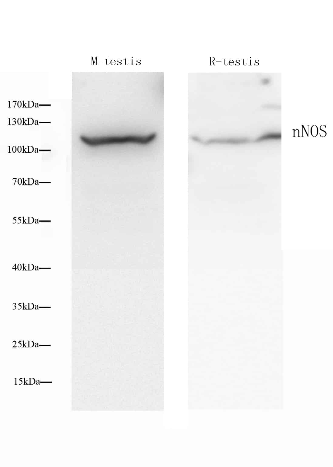 Western Blot analysis of various samples using NOS1 Polyclonal Antibody at dilution of 1:500.
