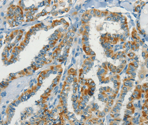 Immunohistochemistry of paraffin-embedded Human thyroid cancer tissue using NPAP1 Polyclonal Antibody at dilution 1:70