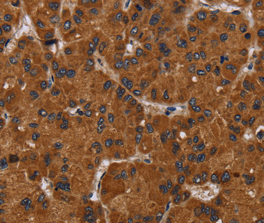 Immunohistochemistry of paraffin-embedded Human liver cancer tissue using NPHS2 Polyclonal Antibody at dilution 1:40