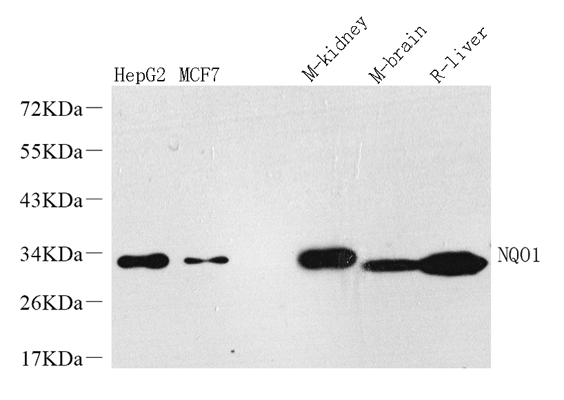 Western Blot analysis of various samples using NQO1 Polyclonal Antibody at dilution of 1:1000.