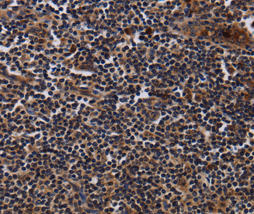 Immunohistochemistry of paraffin-embedded Human tonsil tissue using NTMT1 Polyclonal Antibody at dilution 1:40