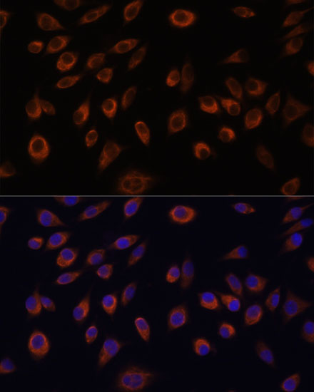 Immunofluorescence analysis of L929 cells using NTPCR Polyclonal Antibody at dilution of 1:100. Blue: DAPI for nuclear staining.