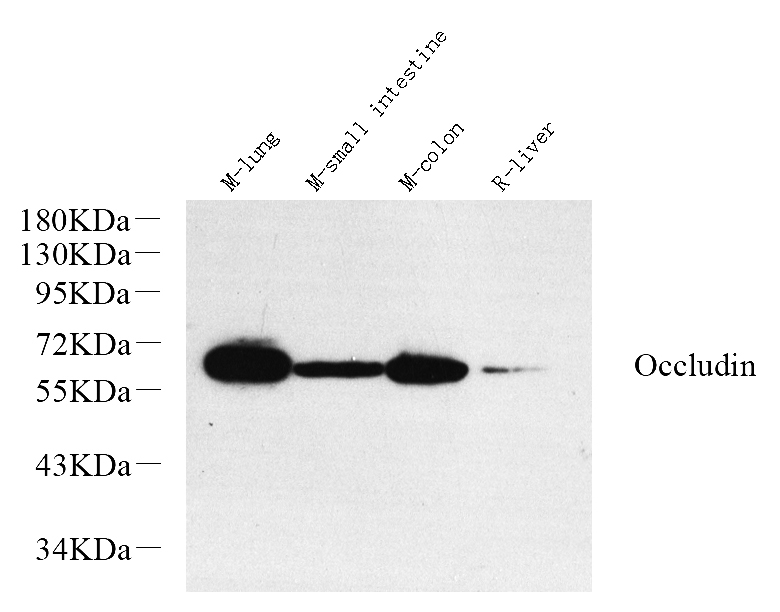 Western Blot analysis of various samples using OCLN Polyclonal Antibody at dilution of 1:1000.