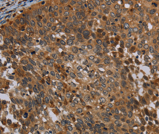 Immunohistochemistry of paraffin-embedded Human cervical cancer tissue using OSM Polyclonal Antibody at dilution 1:30