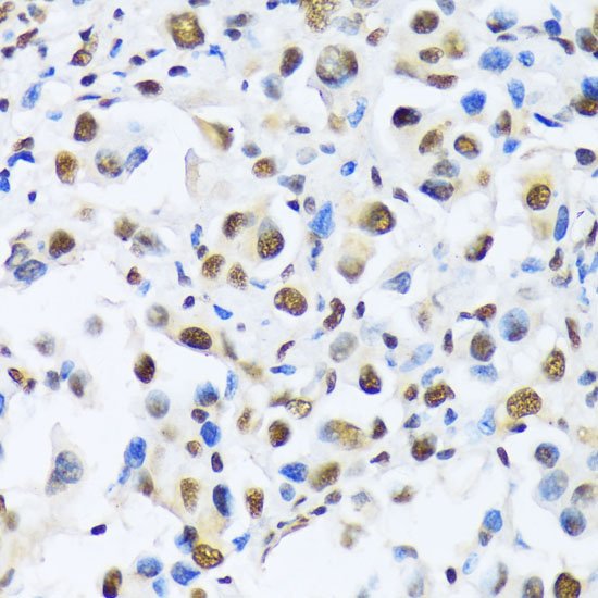 Immunohistochemistry of paraffin-embedded Human lung cancer using OTP Polyclonal Antibody at dilution of 1:100 (40x lens).