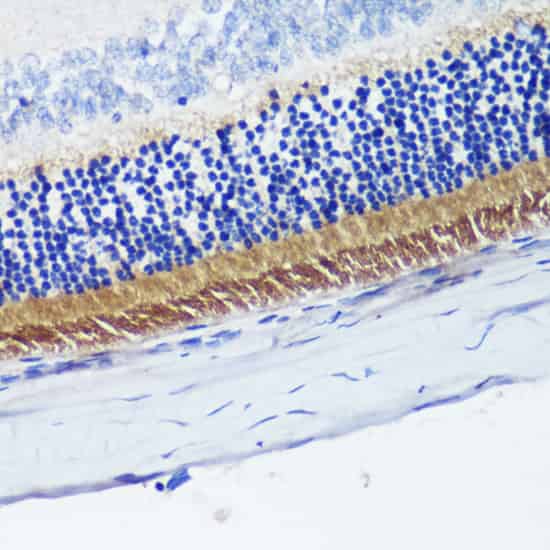 Immunohistochemistry of paraffin-embedded Rat retina using PDE6B Polyclonal Antibody at dilution of 1:200 (40x lens).