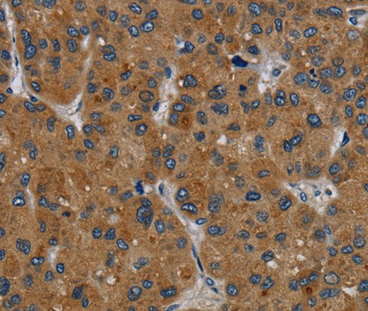 Immunohistochemistry of paraffin-embedded Human liver cancer tissue using PDGFC Polyclonal Antibody at dilution 1:40