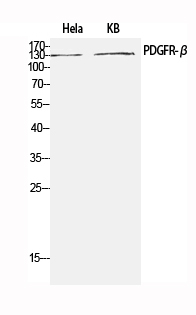 Western Blot analysis of Hela, KB cells using PDGFRB Polyclonal Antibody at dilution of 1:1000.