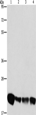 Western Blot analysis of A549, K562, hela and hepG2 cell using PEBP1 Polyclonal Antibody at dilution of 1:475