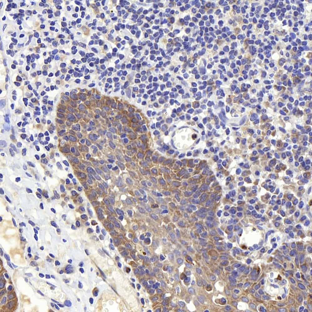 Immunohistochemistry analysis of paraffin-embedded human tonsil using PERK Polyclonal Antibody at dilution of 1:400.