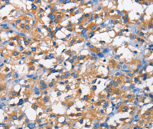 Immunohistochemistry of paraffin-embedded Human thyroid cancer tissue using PFKP Polyclonal Antibody at dilution 1:50