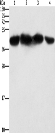 Western Blot analysis of HepG2, 293T, hela and NIH/3T3 cell using PGK2 Polyclonal Antibody at dilution of 1:600
