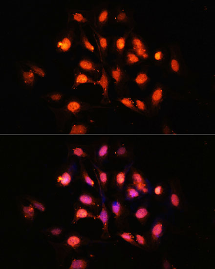 Immunofluorescence analysis of U-2 OS cells using PHLPP1 Polyclonal Antibody at dilution of 1:100 (40x lens). Blue: DAPI for nuclear staining.