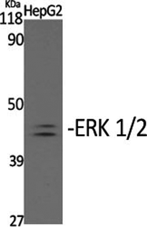 Western Blot analysis of HepG2 cells with Phospho-ERK 1/2 (Tyr204) Polyclonal Antibody at dilution of 1:2000