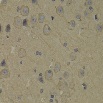 Immunohistochemistry of paraffin-embedded Rat brain using PI3 Kinase p85 alpha Polyclonal Antibody at dilution of 1:100 (40x lens).