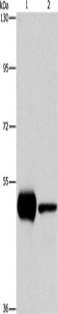 Western Blot analysis of K562 and Mouse brain tissue using PIP4K2A Polyclonal Antibody at dilution of 1:1150
