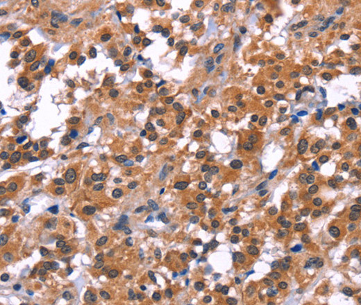 Immunohistochemistry of paraffin-embedded Human thyroid cancer tissue using PIP5K1B Polyclonal Antibody at dilution 1:30