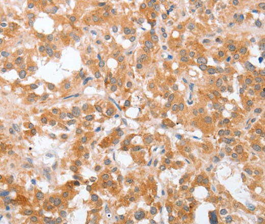 Immunohistochemistry of paraffin-embedded Human thyroid cancer tissue using cPLA2 Polyclonal Antibody at dilution 1:40
